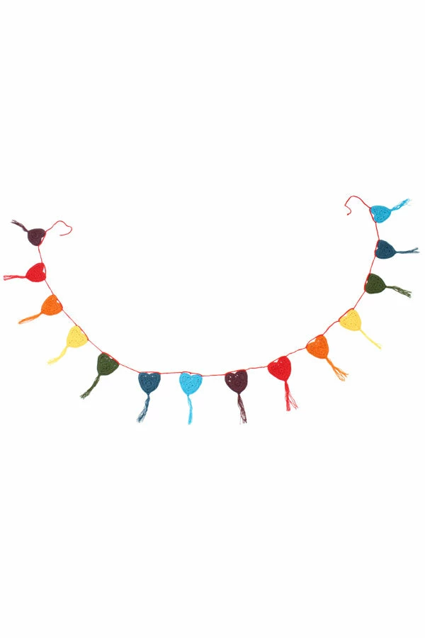This handmade yarn tassel garland is a fun room or party decoration. It is also great for decorating your tent, van, rv, or dorm room as it’s easy to hand up quickly by the end loops as temporary decor. The tassels are made out of tiedye blended yarn, and the beads are hand carved in Nepal. The vibrant colors work well together or separately.