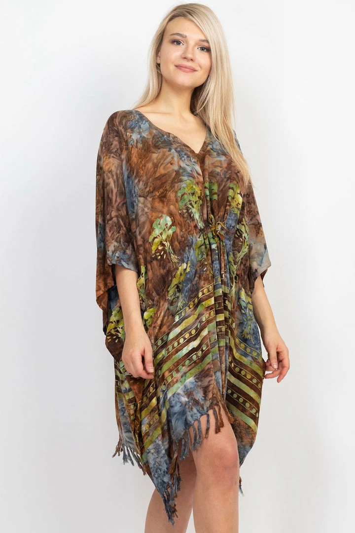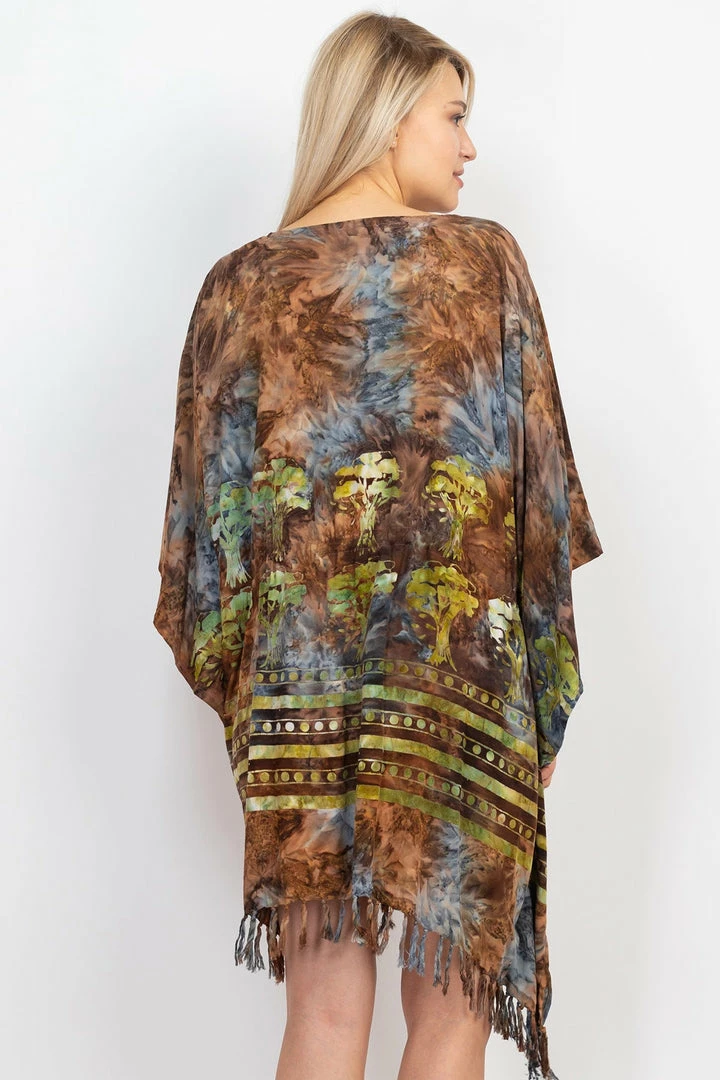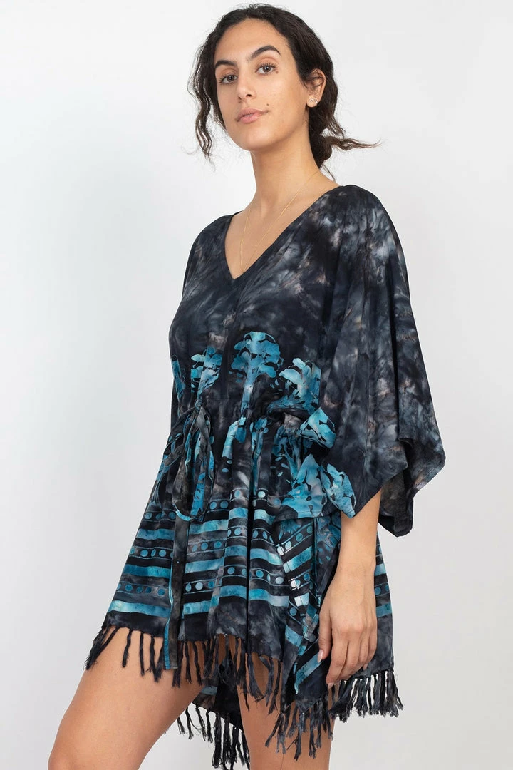 Show up your style in our Batik Tree of Life Coverup. The generous V neck will slip over your head and onto your body effortlessly and very comfortable to wear. This versatile and vibrant top will be your favorite. You can pair with your other favorite bottoms and sandals for summer look.