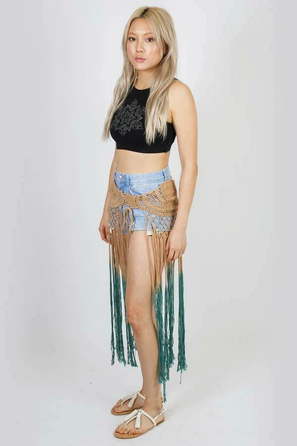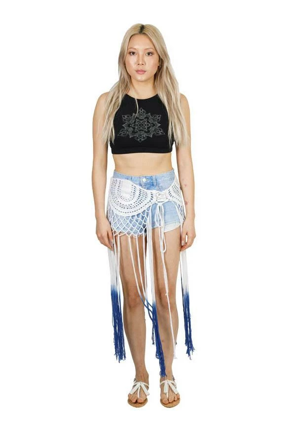 Complete your look by adding a layer of gypsy mystique that moves with your body and makes your spirit want to dance. The cotton fabric is soft on the skin and is flexible but sturdy. Whether you’re wearing pants, leggings, mini or maxi skirt, at the beach, party, or a music festival, this overskirt offers grace and beauty with your movement and inspires you to flow as freely as the fringe flows with you.