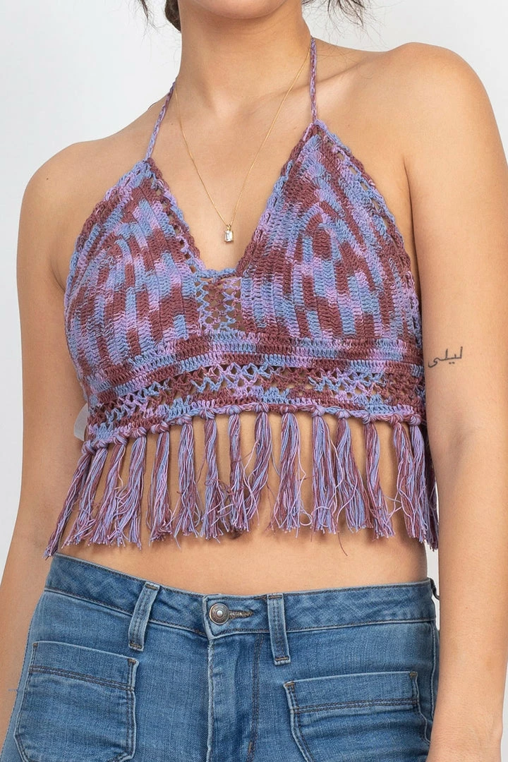 - Center length – 9 1/2 inches | Bust – 14 inches | Strap length – 17 inches | Fringe- 4 inches