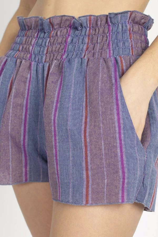 Our summery, easy fit shorts are made from our exclusive soft cotton stripe fabric. The waistband is wide with soft elastic for a flattering fit. The side pockets are generous and the legs are a loose breezy fit.