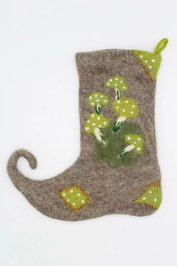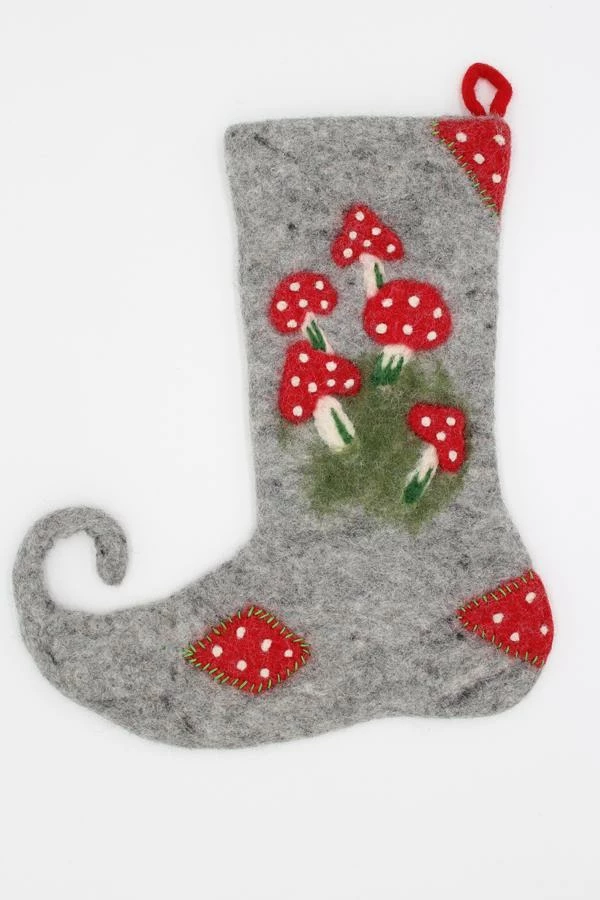 Our Felt Mushroom Stockings are perfect for Christmas decoration or for holiday decor. Our felt ornament are crafted with a love by Nepalese artisan hand from sustainable wool. These ornaments are cute accessory for a holiday or a perfect gift for a decor.