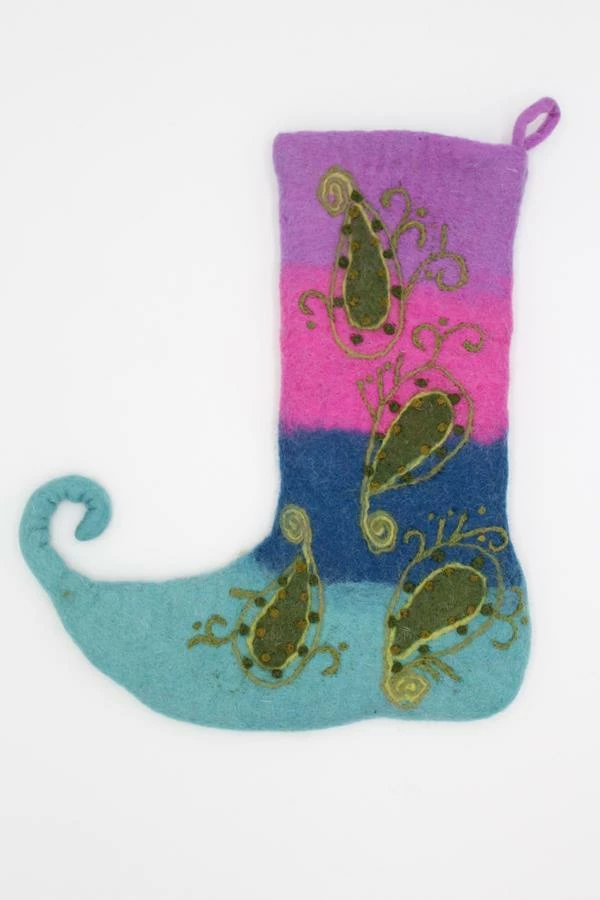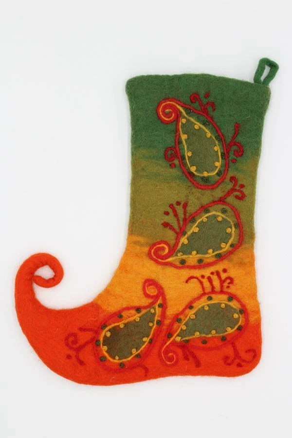 Our vibrant color Felt Paisley Stockings are perfect for Christmas decoration or for holiday decor. Our felt ornament are crafted with a love by Nepalese artisan hand from sustainable wool. These ornaments are cute accessory for a holiday or a perfect gift for a decor.