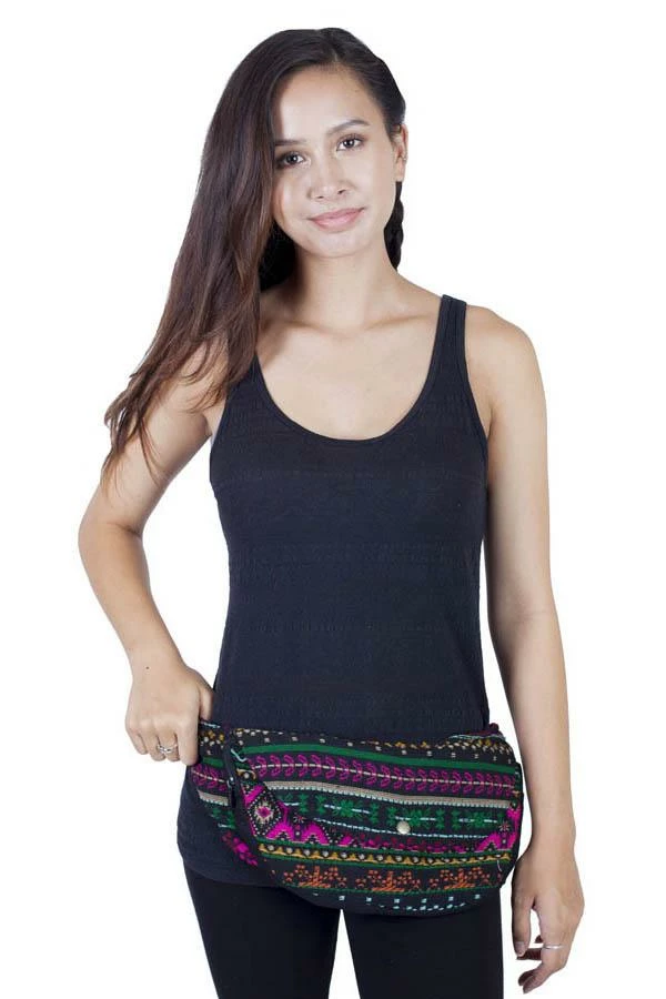 Break free from a purse with the waist pack. The cotton material is soft and durable for long lasting wear and comfort. The thick adjustable strap with a stylish hoops and clips allow you to find the perfect fit for exploring the world.