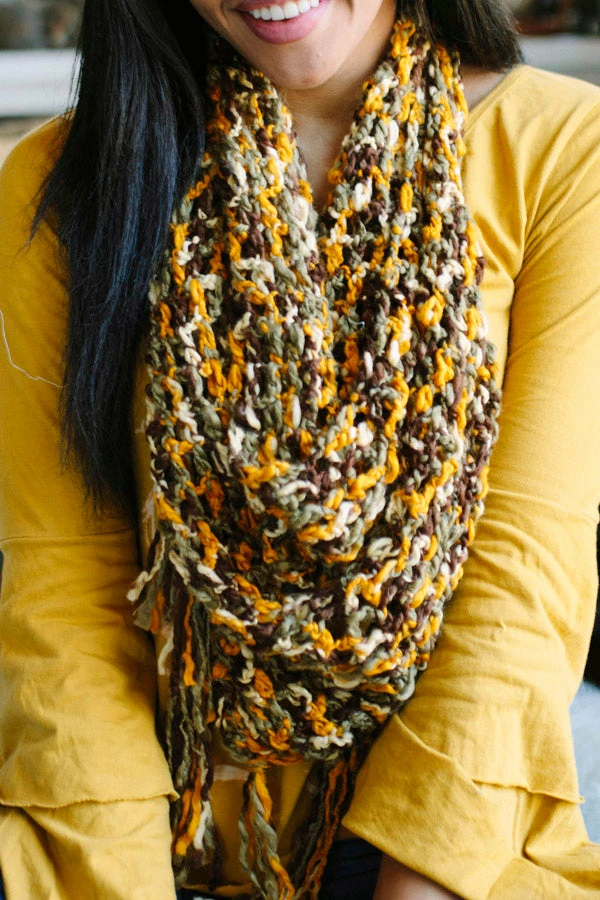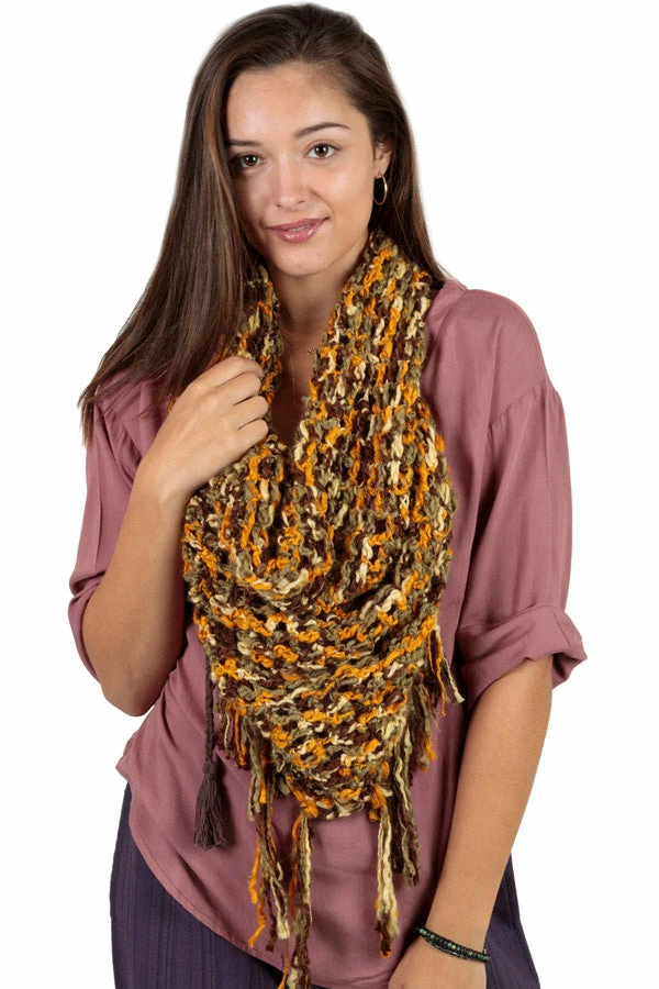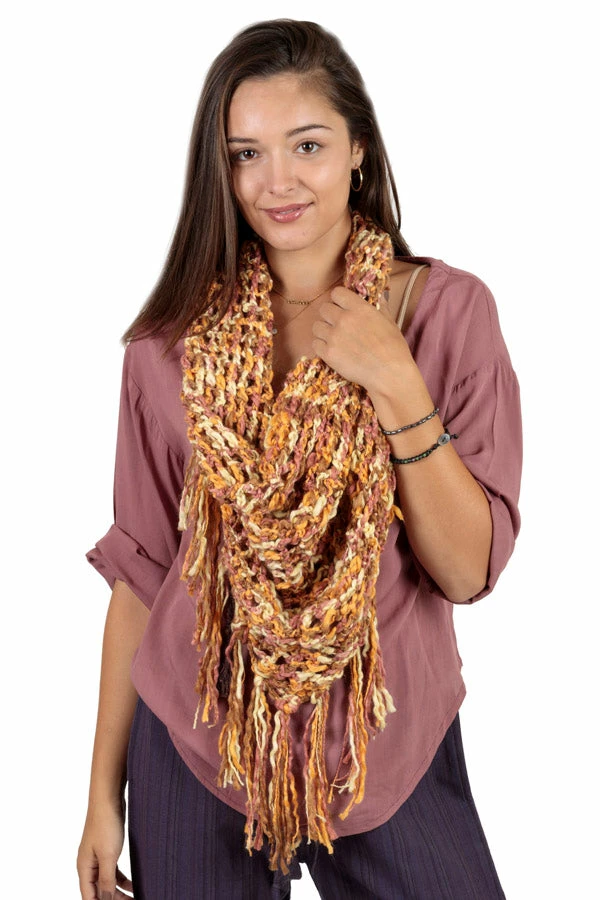 This winter keep yourself warm and fashionable with this fringed cowl scarf. The acrylic threads feels so soft against your skin. This carefully knitted infinity scarf features a great mix of color tones fitted for the winter.