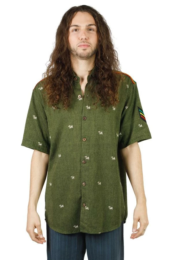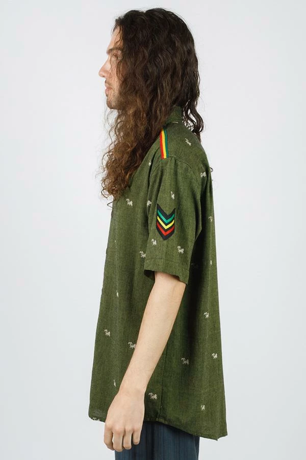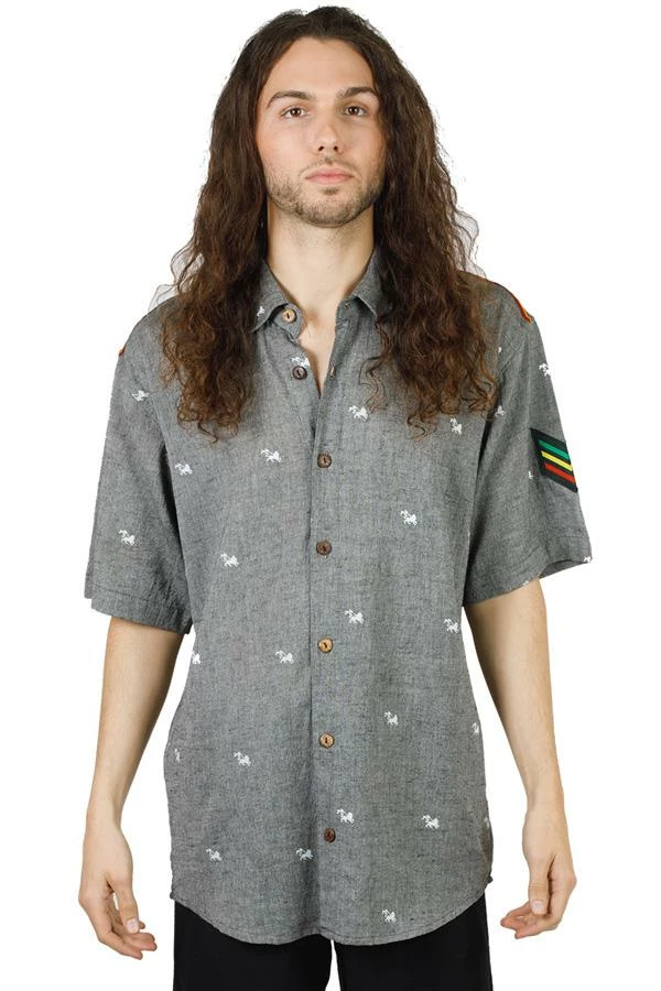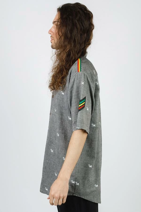 Bring some Rasta vibes into your wardrobe with our summer button-down. The fabric is light, soft, and breathable for maximum comfortability. Dark buttons and a creased collar show off your professional side. The relaxed shape makes for a very comfortable fit, and detailed artwork gives you a look that is creative and unquestionably bold.