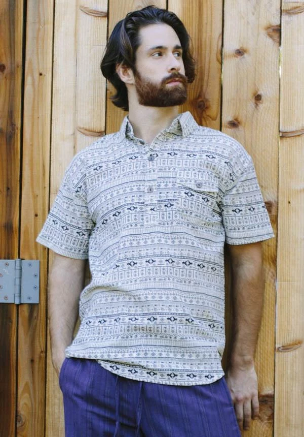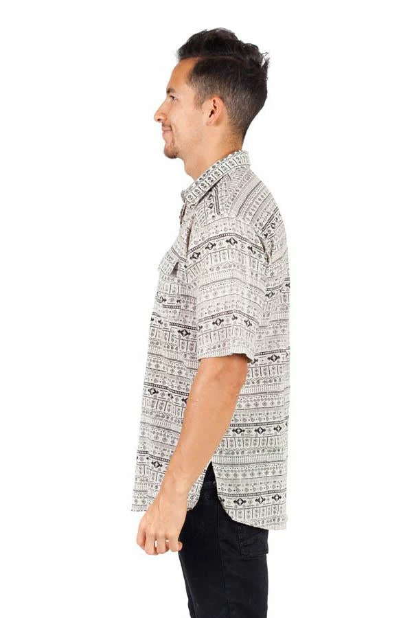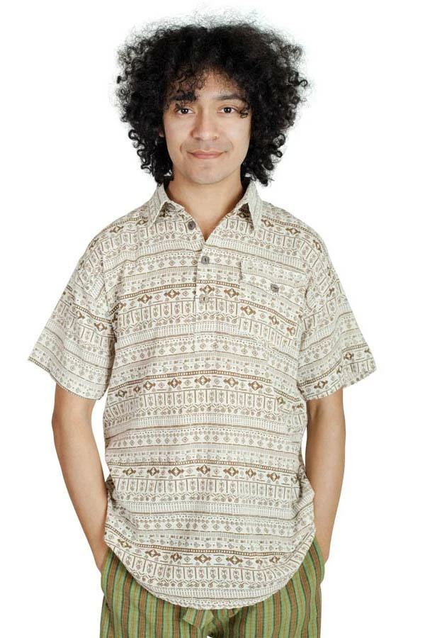 Be casual, comfortable, and cool with the short-sleeved kurta. Light fabric is breathable, and made into a relaxed fit for all-day comfort. A folded collar and buttoned breast pocket look sleek and professional while four button on top allow you to dress up or button down. The detailed print work is bold and unique, giving you a style that will be the coolest of the crowd.