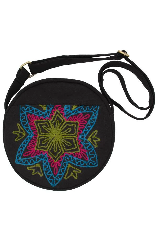 Hand Ebroidery Crossbody Boho roundbag for Women. Add this perfect fun accessory with any outfit and look like a real fashion blogger with this trendy round Bag.The unique shape with embroidery on bag and minimalist design make it just as versatile as a boxy bag, but far more stylish and unique. The new round purse design comes with an exterior pockets that is spacious enough to hold the largest iphone, recipets, and even a small wallet.