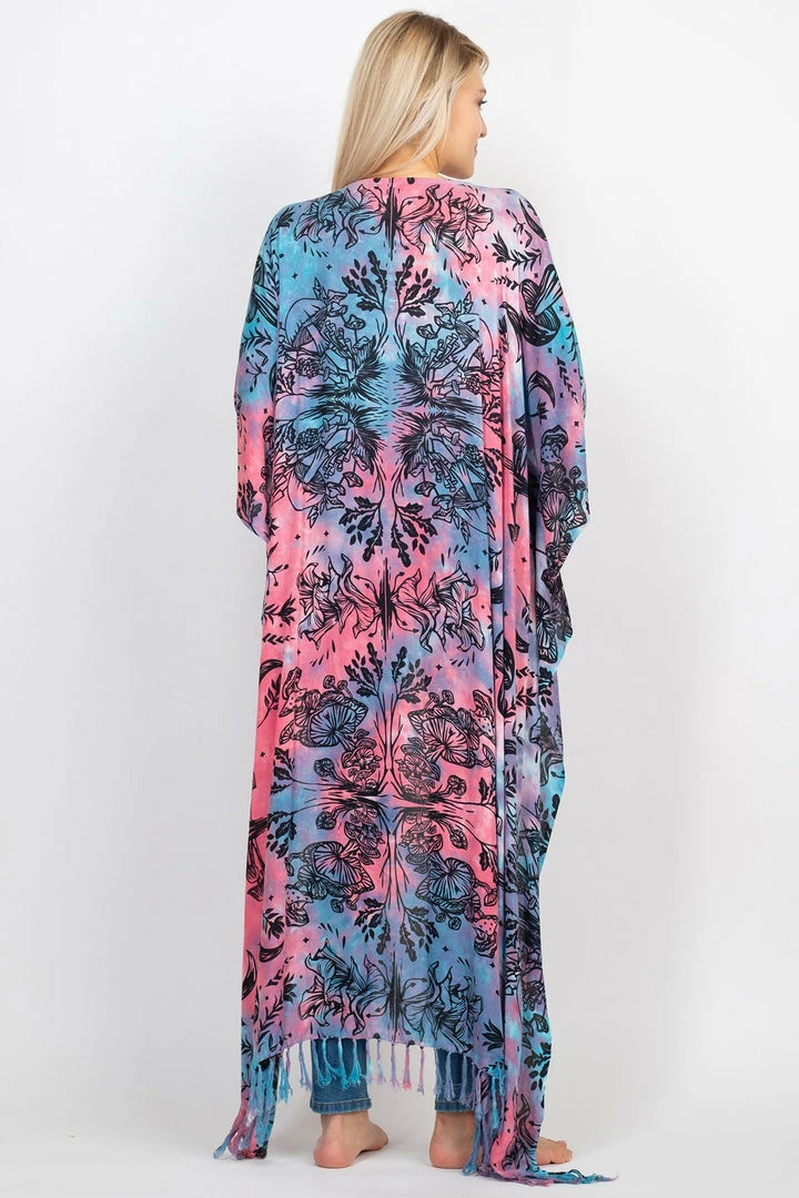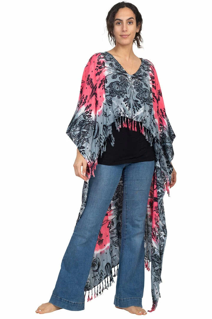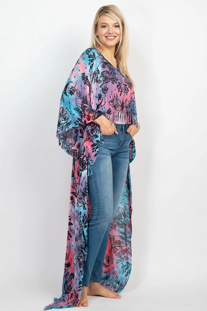 This Mushroom Hi Low poncho is made in the softest woven fabric, with cute knotted tassels all along the bottom edges.  You can wear as a beach coverup or as a dress or top with jeans or leggings.