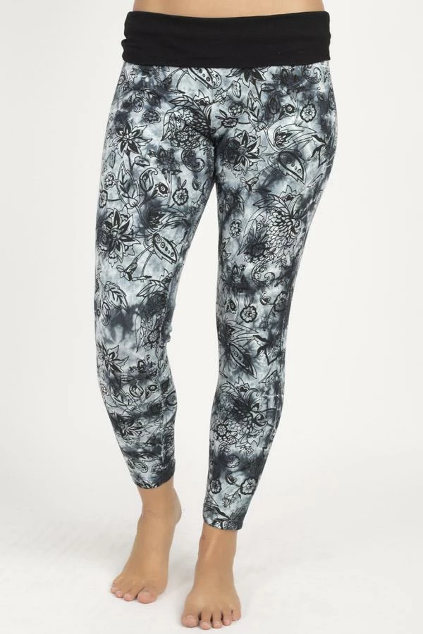 Our Organic Cotton Tie-Dye Flower Print Legging pants are great for yoga, a night out or just lounging around.The drop crotch with jogger legs make a fashion forward silhouette, and the tie-dye adds a handmade touch.Â