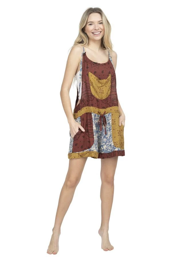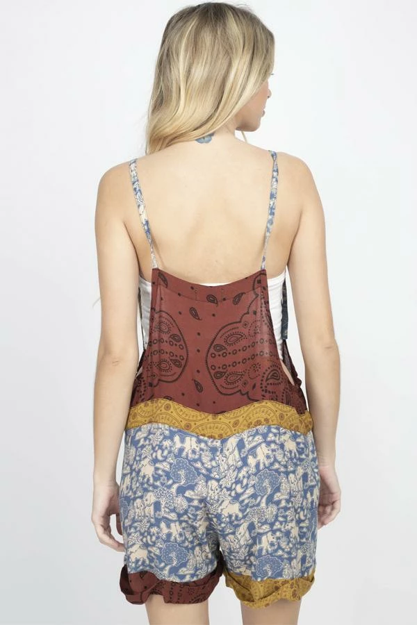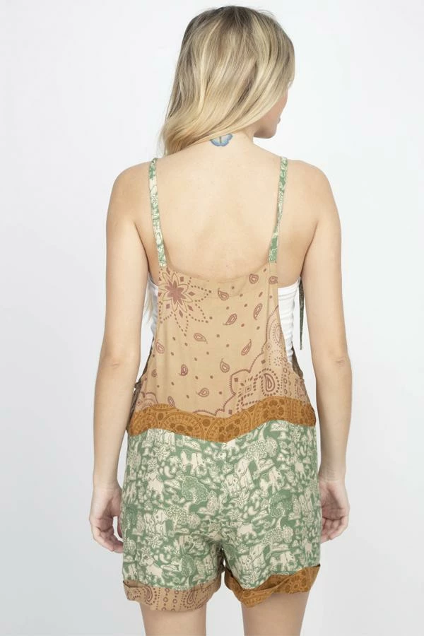 If you liked our Easy Slouchy overalls, you’ll love this shorts version. This Patchwork Shortall romper is a really fun summer piece, that you can layer with our crop baby tee for a throwback look, or wear as a swim coverup at the beach. The fabric is a soft woven rayon with a variety of fun hippie prints. The straps are looped through the front panel for a completely adjustable metal free attachment.