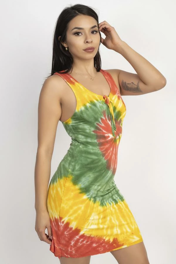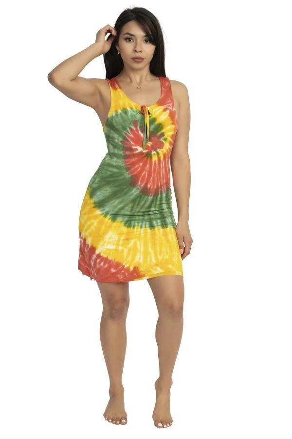This soft and body hugging racerback Rasta dress with a spiral is perfect for a night out, a day in, or a day at the beach. It’s as soft and comfy as pajamas, but eye-catching enough for date night. Pair it with your converse and a denim jacket for shopping, boots and a cool headband for a music festival, or heels for dancing. This dress is hand tie-dyed in Nepal, and double layered for the most flattering fit.