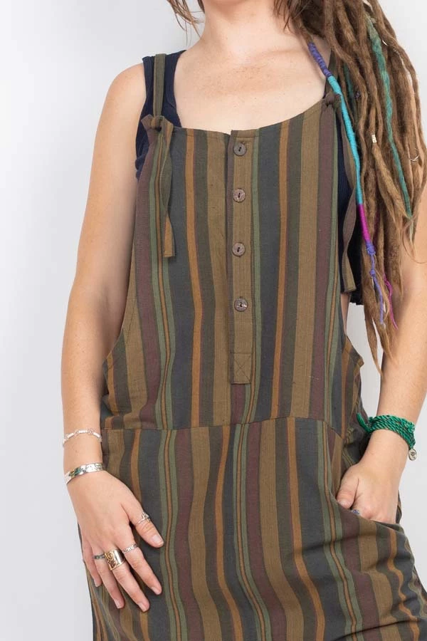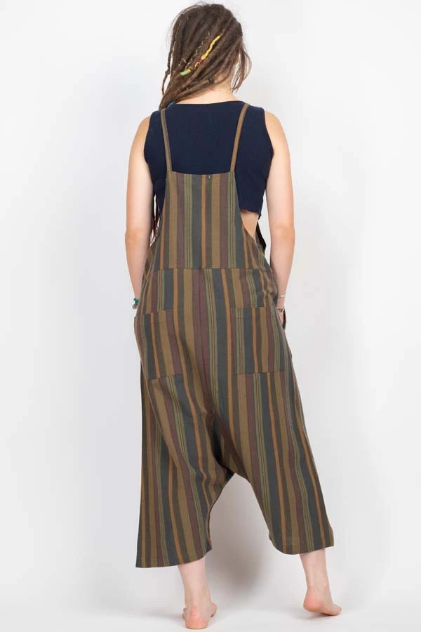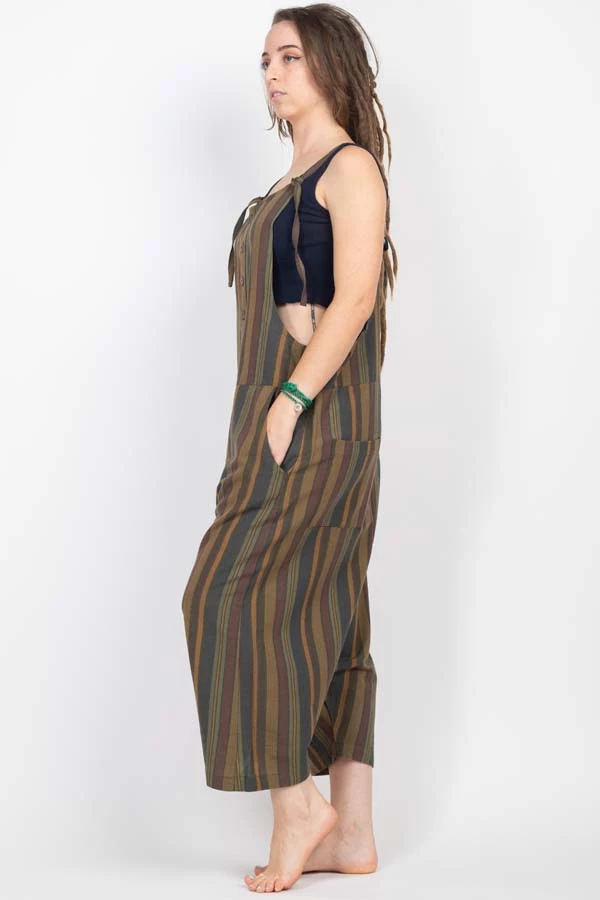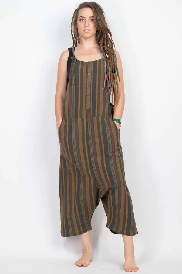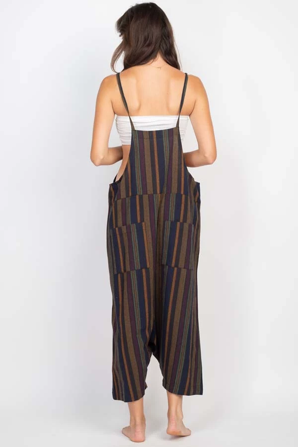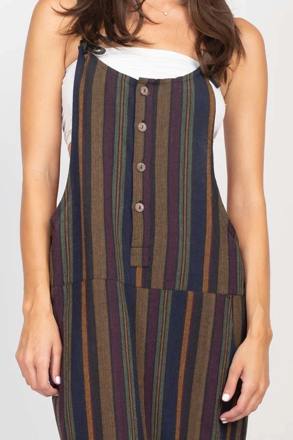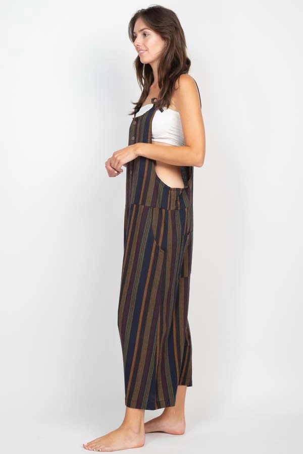 These Stripe Cotton Oversized Overall Rompers have a super comfy fit with cropped mid calf to high ankle wide legs. Button up style on front gives a vintage look.