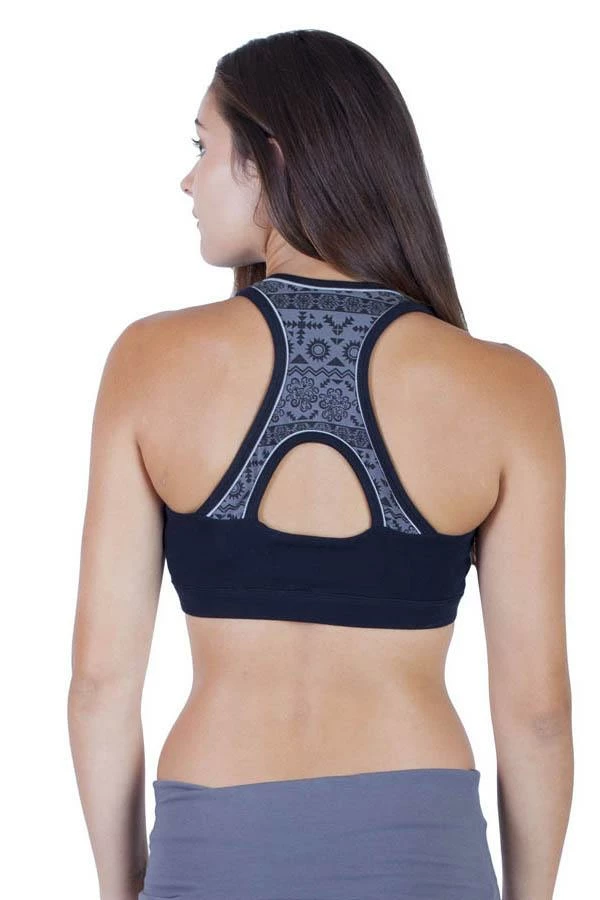 This bra top means business. Made with organic cotton, it good for your skin and good for the planet. The fabric is free of harsh chemicals, and organic cotton production reduces waste while helping the economies of growing countries. Plus, the fabric is seriously softer than traditional cotton, and it is durable, breathable, and moisture wicking. Double-lining gives your extra comfort and coverage, and thick straps give you plenty of support. The cool pattern and the razor cut design on the front are just for fun so you look great while you exercise.