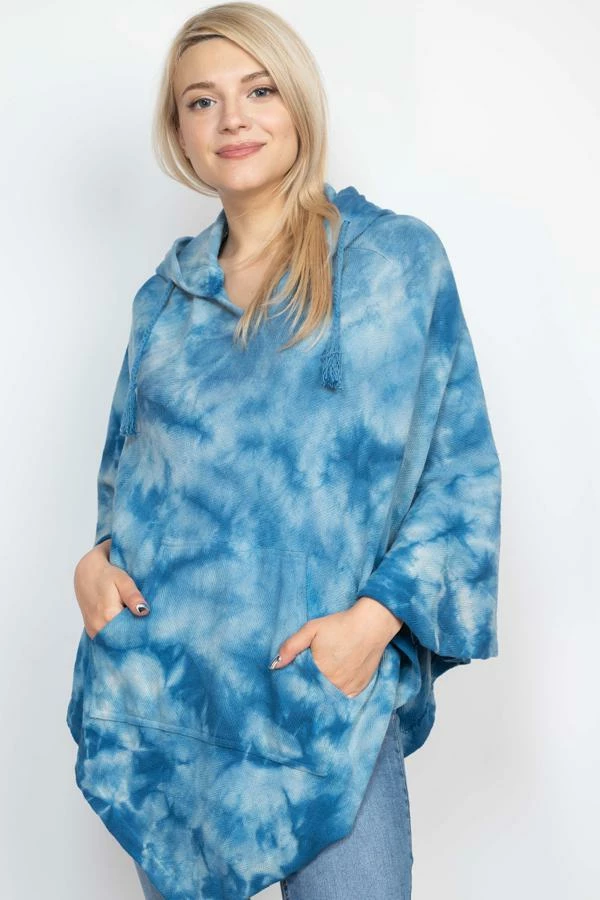 Our new Tie-Dye Poncho is comfortable handwoven to wear featuring a  generously sized hoodie and a kangaroo pocket perfect for indoor or outside activities.