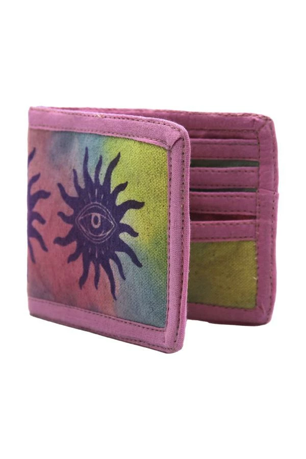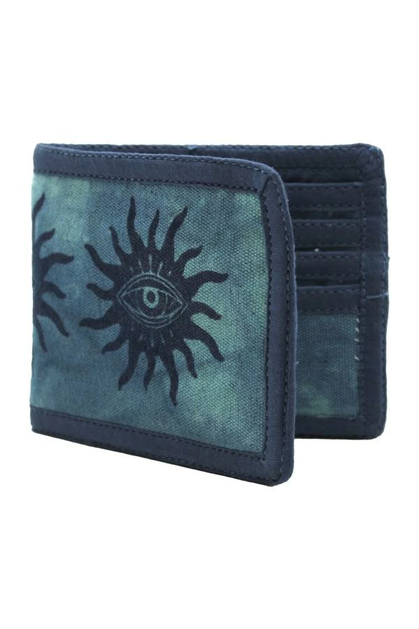 Your wallet is your smallest accessory, but it can have the greatest vibes. This wallet is made of cotton canvas, making it durable and flexible. It has a full-length pocket perfect for bills and checks, and has smaller pockets that snugly fit your ID and cards. The Evil eye tie-dye print is printed in an ombre style. Pair with a boho bag for a complete look of good vibes