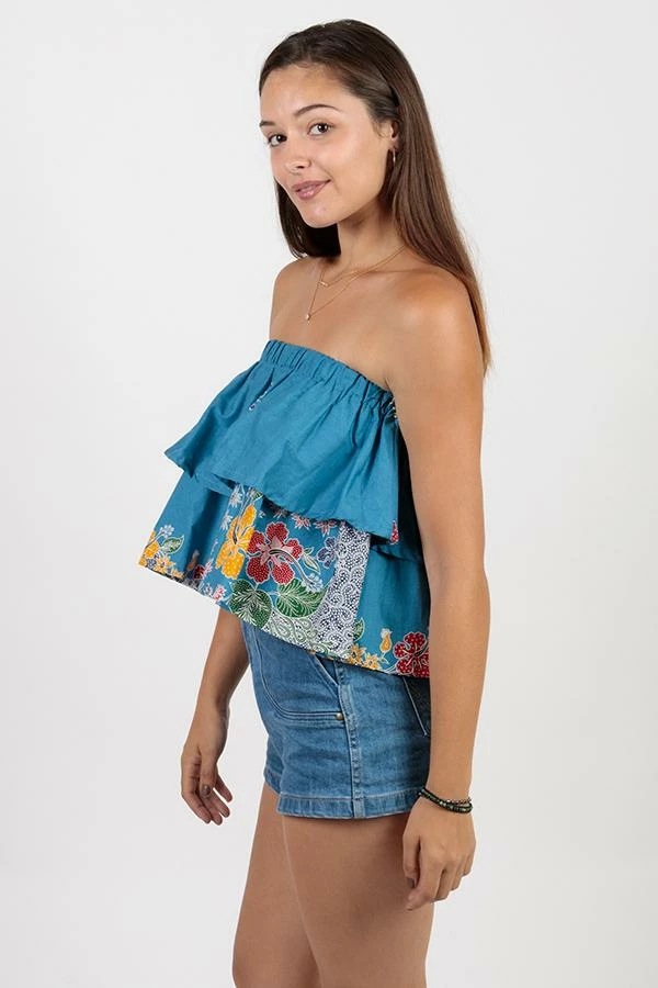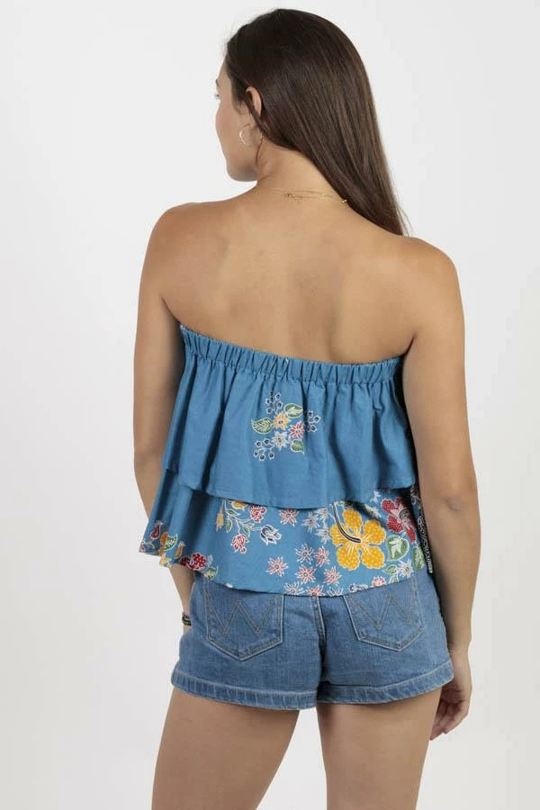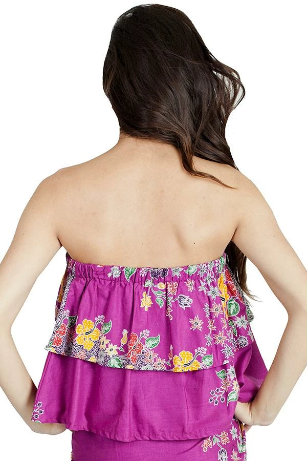 Hello sun! Welcome warm weather with vibrant colors and light fabrics. This top is comfy, cool, and colorful! The elastic top is secure but gentle for all day comfort. Wear at the beach or at your next summer BBQ and show off your boho style.