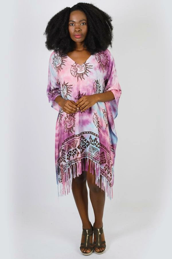 Just as the sun and moon are bound to the earth, we are all bound together by spiritual forces beyond our control. The free-flowing shape along with waving fringe is meant to inspire us to open our minds to the movement of the energies around us so that we may more easily feel and connect with the energies of those around us. Add this colorful celestial piece to your look for an everyday boost of inspiration that will work well whether you’re at the beach, a music festival, or a community cookout.