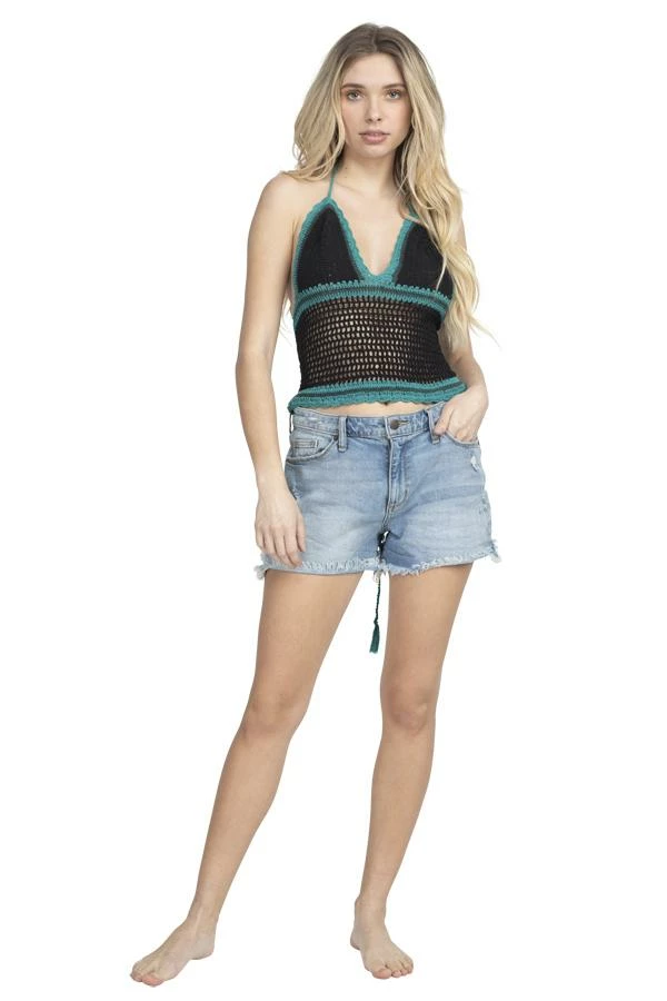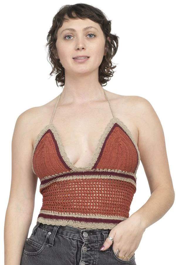 Style up your summer wardrobe with the crochet halter top. This Tri Color Crochet Halter top is soft, light, and durable, keeping you comfortable all day long. Ties around the neck with a corset back allow you to adjust this top to your perfect fit. With four adorable color options, this top will pair perfectly with your favorite jeans for a cool summer look or with your bikini bottoms for a stylish back look.