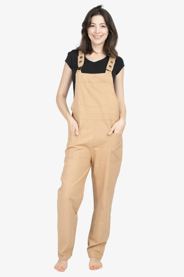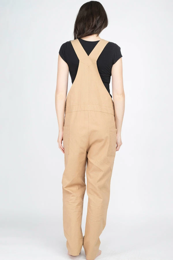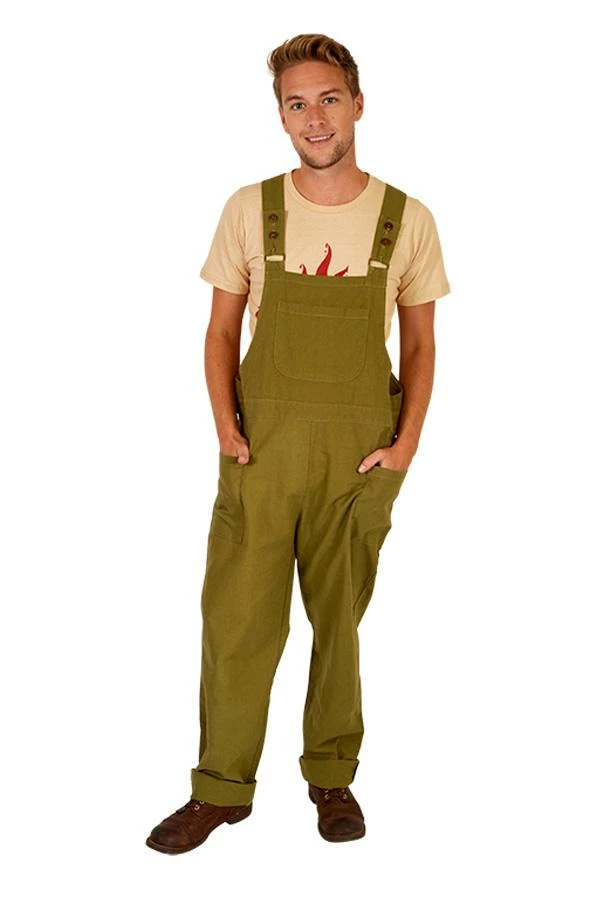 These hemp overalls are from our Mother Flower collection, our favorite new addition to our line. The eco friendly hemp fiber is blended with cotton and washed for comfort from the first day you own them. The pockets and seams are reinforced to give these overalls a long life. The fit is easy and oversized so keep in mind when ordering, and the legs are generously cut for a casual look. The straps are buttoned and adjustable.
