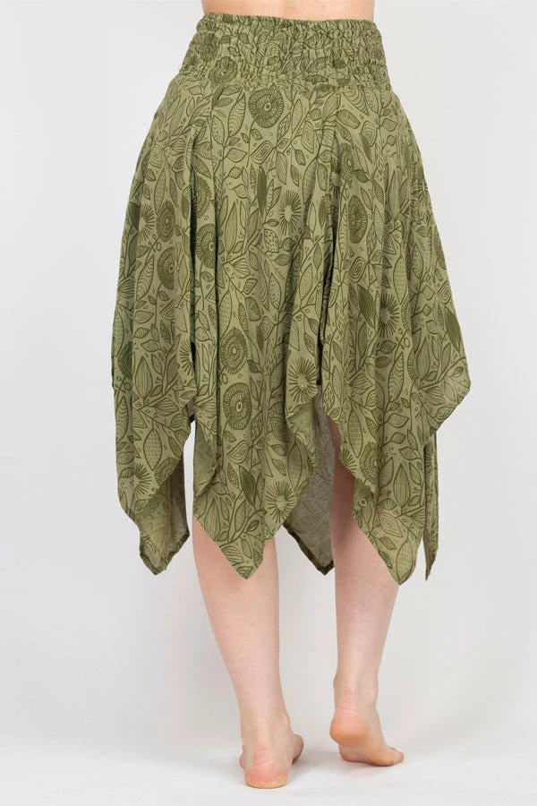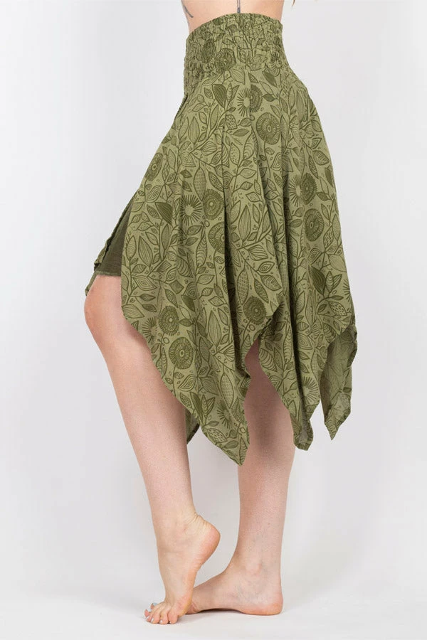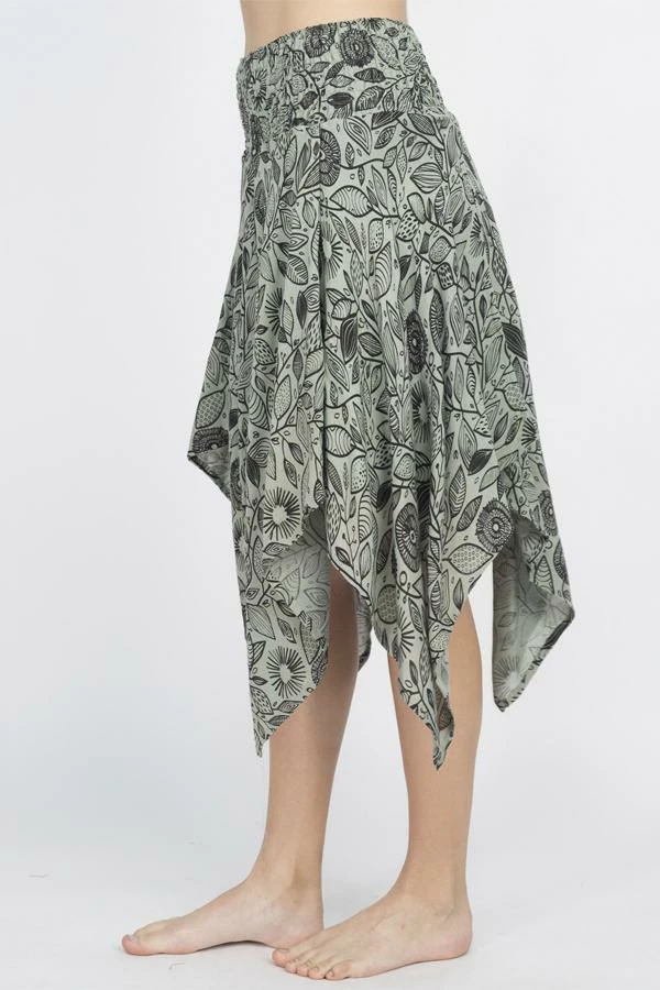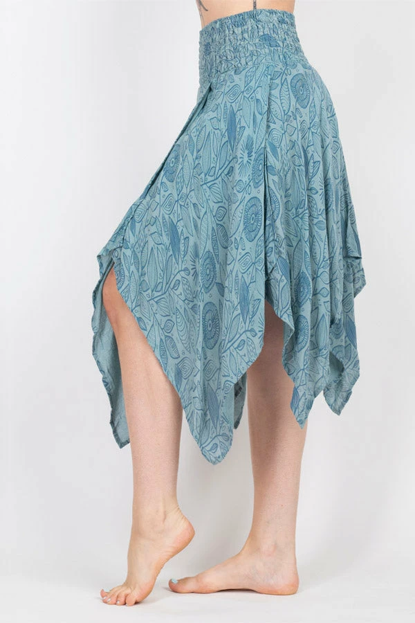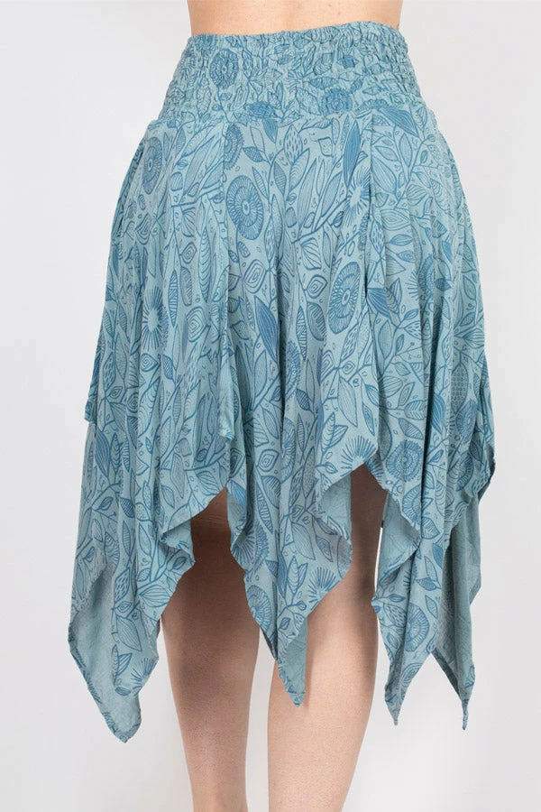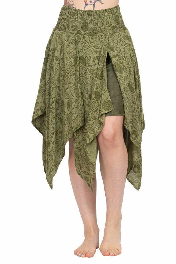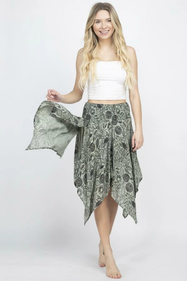Add positive vibes to your wardrobe with the free-spirited fairy skirt. Layers of light fabric flow as you move, keeping you cool and comfortable all day. The wide-banded elastic waist offers a relaxed fit while staying in place as you walk, dance, or relax. The skirt is made of four separate handkerchief panels with a light lining for modesty. The subtle pattern is a vintage inspired floral paisley pattern.