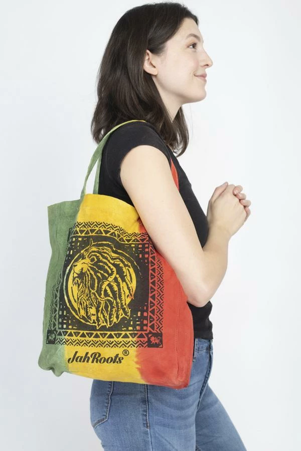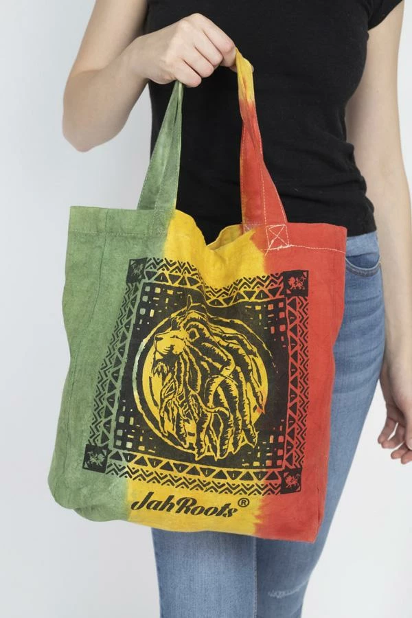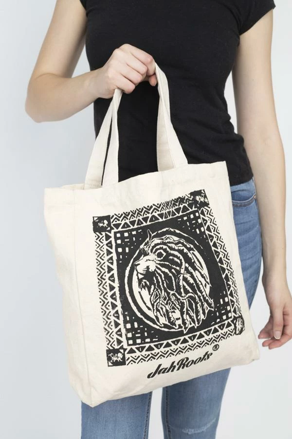 The cotton tote bag features a Lion logo. This tote bag is ideal for shopping as well as a fashion accessory for your music festival. It is strong enough to carry heavy items but will also fold up small and fit into a handbag or pocket.