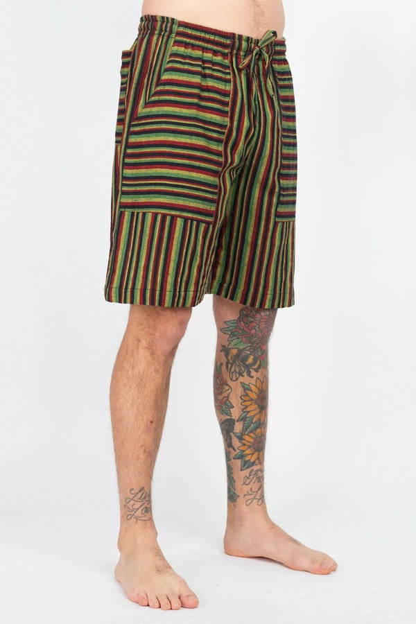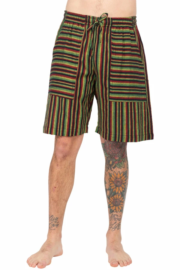 Meet our new favorite Rasta vibe short. We use fine cotton to make fabric that is super soft, light, and breathable for maximum comfortability. Multiple pockets will fit all your necessities, and a drawstring at the waist allows you to find the perfect fit. Our rasta stripe is simple yet creative, giving your look the right style to look great in any setting.