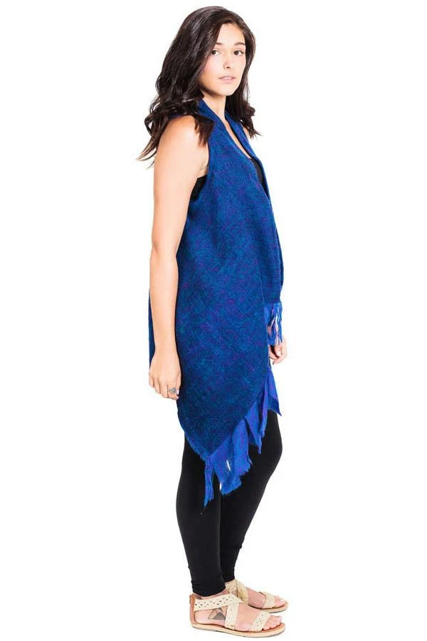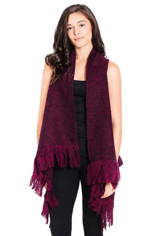 Start the season off right with stylish layers. The durable wool fabric is soft and flowy so you can feel good and look good for many outfits to come. Funky fringe flows down at the sides like a waterfall of fun. Layer this vest with your favorite tanks, tees, and long sleeves for all-year fashion funk.